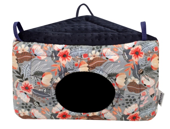 W ściankach domku umieściliśmy miękką piankę i puszystą owatę. Zapewniają one nie tylko niezwykle wygodny wypoczynek zwierząt, ale też naturalną wentylację. Tworzą niekorzystne środowisko do rozwoju wszelkich bakterii i nie odkształcają się. Są też elastyczne, ale stabilne, dzięki czemu utrzymują formę kształt nawet na wysokości. Możesz powiesić go w wolierze za pomocą uchwytów wykonanych z taśmy, którą niechętnie gryzą czworonogi. W całej konstrukcji nie znajdziesz żadnych wystających nitek.